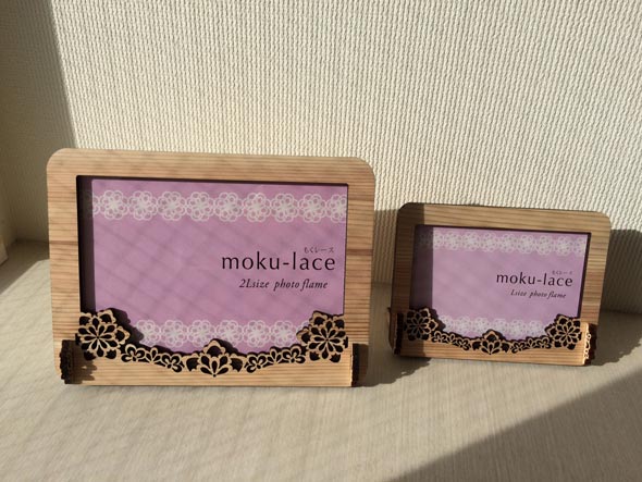 【国産れいほく杉】もくレース フォトフレーム ドイリー柄 2L判サイズ【ばうむ合同会社】【木製 写真立て 小物 雑貨】プレゼント