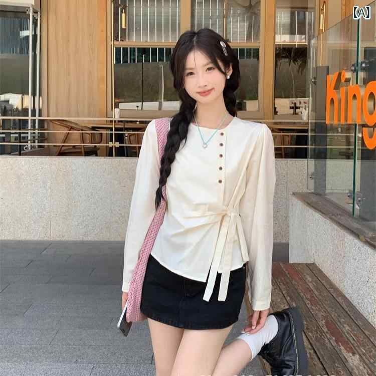 ブラウス レディース 半袖 アシンメトリー 綿麻混 ゆったり 比翼仕立て ラウンドネック レトロデザイン きれいめ 通勤 春夏