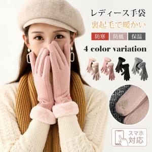 手袋 レディース 秋冬 おしゃれ かわいい 暖かい スマホ タブレット 手ぶくろ 防寒 防風 保温 裏起毛 寒さ対策 黒 ファー ボア