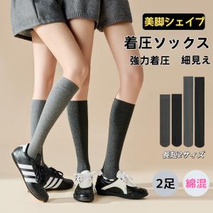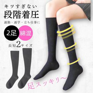 長さ選べる 綿混 2足セット 着圧ソックス レディース ハイソックス 黒 通勤 通学 立ち仕事 仕事 ビジネス ビジネスソックス スクールソックス スクール 加圧