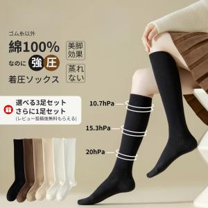 2足目 美脚着圧ソックス 肌と接する糸綿100% 極上の肌触り 強圧引き締め スリムビューティー段階着圧 加圧でむくみ防止 足裏マッサージで疲れとれ レディース