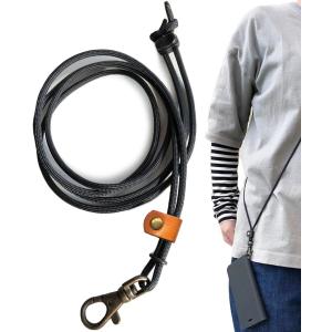 リール付き ネックストラップ 本牛革 レザーネックストラップ 52cm ブラック / レッド / ブルー / グレー / ブラウン / ピンク