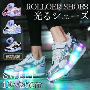 ローラーシューズ スニーカー 子供 2輪 led 7色照明 ローラーシューズ子供用 ローラースケート かかとボタン ヒーリーズ 23cm 男の子 女の子 USB充電式