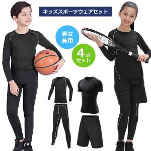 スポーツウェア キッズ コンプレッションウェア スポーツインナー ジュニア 上下 4点セット 小学生 男の子 女の子 長袖 半袖 黒 部活 スポーツ サッカー