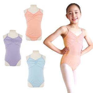 バレエ レオタード シフォンスカートレオタード バックリボン (半袖) B8085 子供・ジュニア スカート付き 胸元 ギャザー 綿 コットン