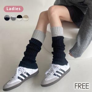レッグウォーマー 暖かい 防寒 リブ ニット 編み レディース レッグカバー ストレッチ 伸縮性 配色 バイカラー