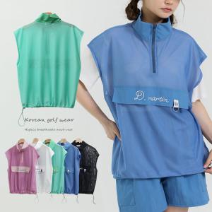ゴルフウェア ナイロン ベスト レディース 韓国 ジャージ ハーフジップ ハイネック 襟 春 秋 夏 おしゃれ カジュアル テニス スポーツ ウェア