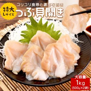 つぶ貝 開き 特大・Lサイズ 1kg(500g×2袋) 生食可 下処理済み お刺身 お寿司 肉厚 大容量