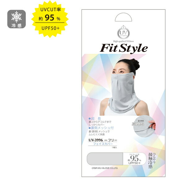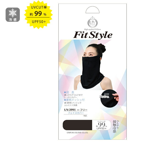 フィットスタイル フェイスカバー メッシュ付 全長34cm ブラック おたふく手袋 UV-3991
