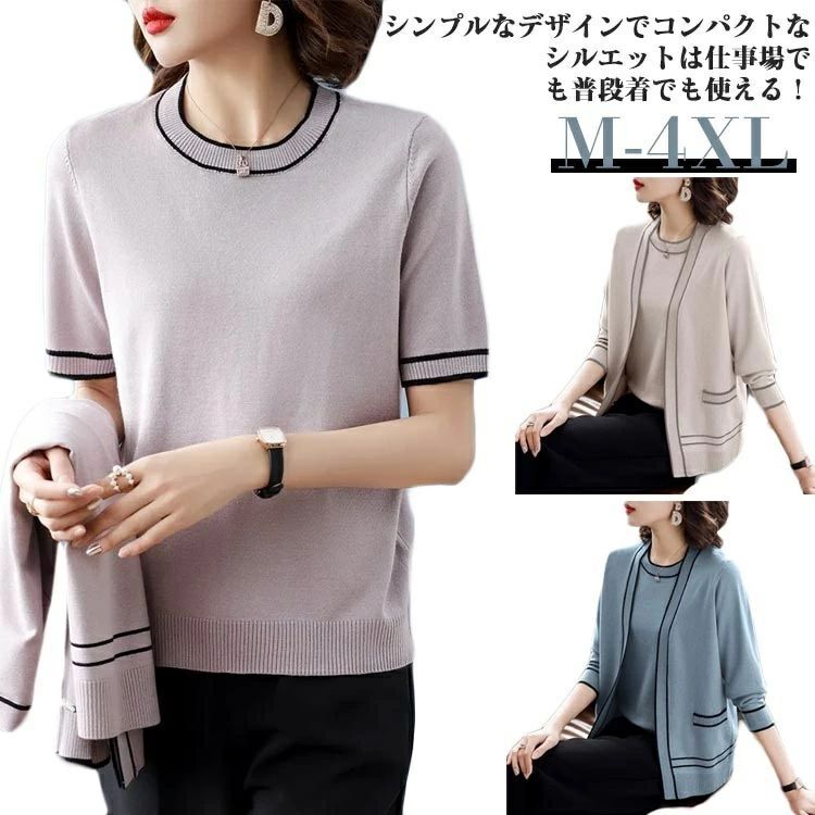 シンプル レディース レディース 秋冬 母の日 ニット ゆったり ス 大人 2点セット 五分袖 婦人 ラウンドネッ きれいめ オフィス