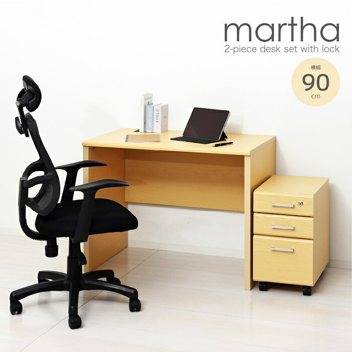 デスク ワゴンセット 2点セット 鍵付き 収納付き シンプルデスク パソコンデスク ナチュラル 平机 勉強机 学習机 デスクワゴン デスクキャビネット 木目調 ナチュラル 在宅ワーク リモート勤務 在宅勤務 デスク用チェスト