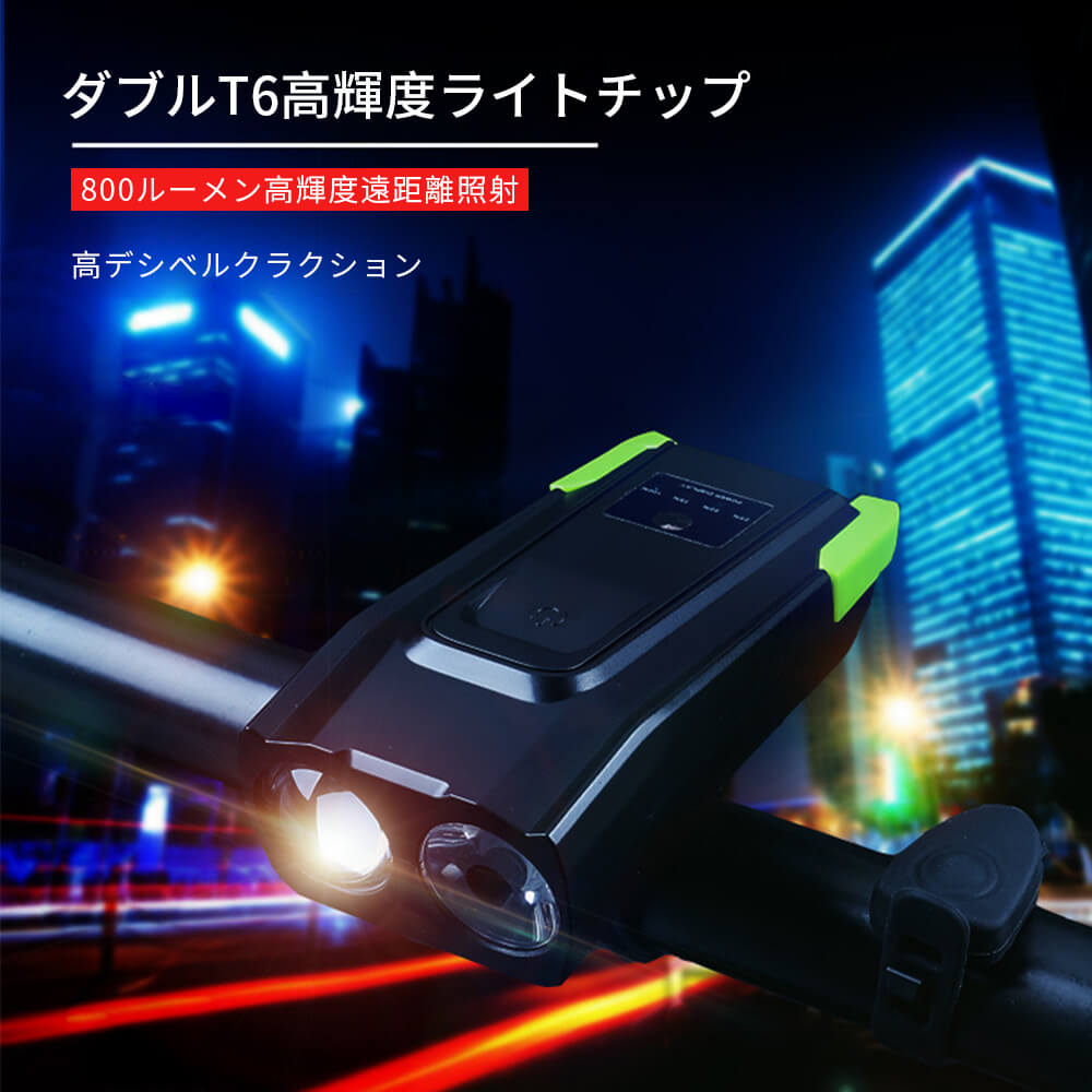 お買い物マラソン【P5倍】2400mAh大容量バッテリ 眩しい光防止 自転車ライト 高輝度クラクションフロントライト 120dBクラクション USB充電 T6高輝度ライトチップ 残量表示灯 生活防水 遠距離射程 透光率が高い 高輝度 懐中電灯 長時間使用