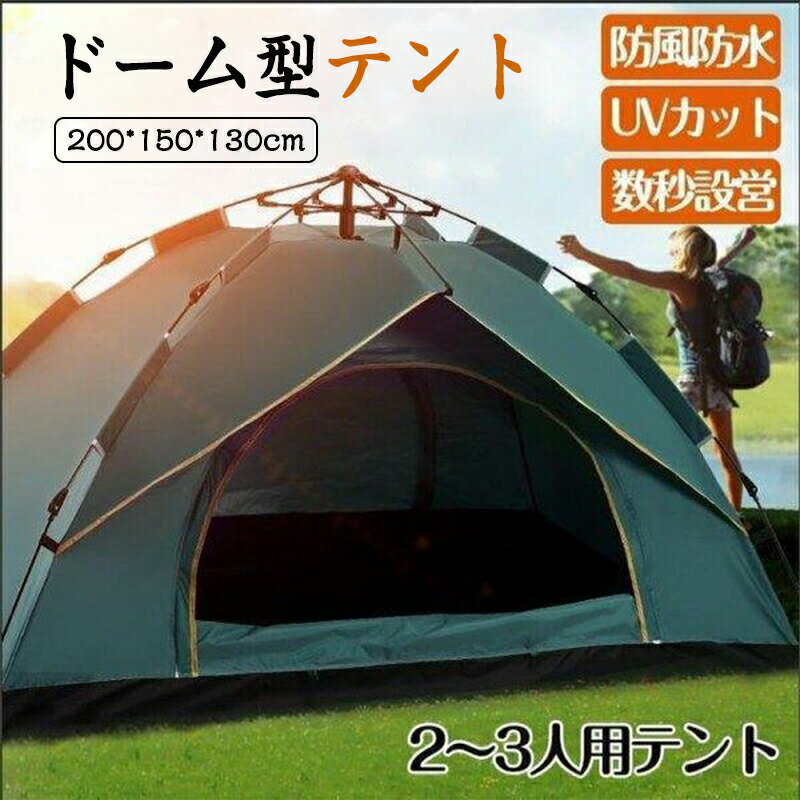 お買い物マラソン【P5倍】キャンプテント ドーム型テント 2-3人用 200*150*130cm UVカット 軽量 フルクローズ 簡単 簡易テント 紫外線防止 サンシェード 防風防水 防災用 お花見 運動会 登山 サンシェードテント 数秒設営 安全 簡単 収納