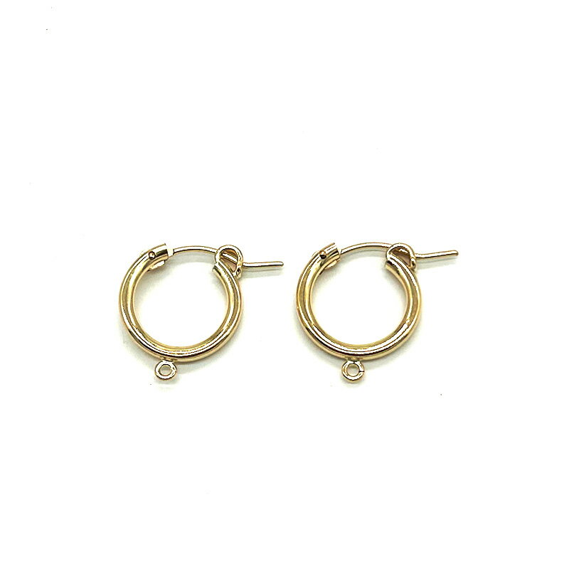 【1個売り】 イヤーカフスパーツ 18金 イエローゴールド ダブルラインイヤーカフパーツ 線径0.5mmつきさし付きミラーボール付属|手芸用品 金具 飾り パーツ 部品 K18YG k18 18k 貴金属