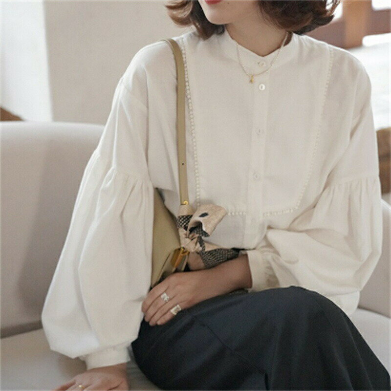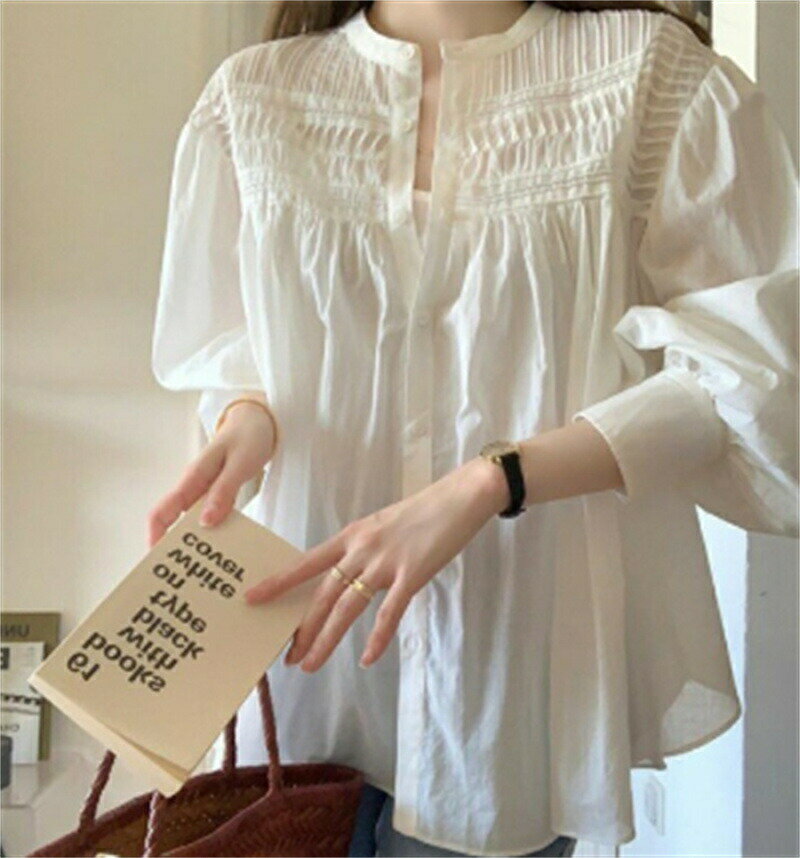 ブラウス レディース おしゃれ パフスリーブ 長袖 立ち襟 きれいめ 40代 30代 50代 通勤 OL 韓国風 ホワイトブラウス 人気 プリンセス 姫系ブラウス 成人式 パーティー 演奏会 発表会 トップス ゆったり S M L XL