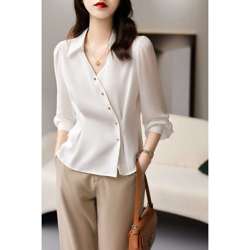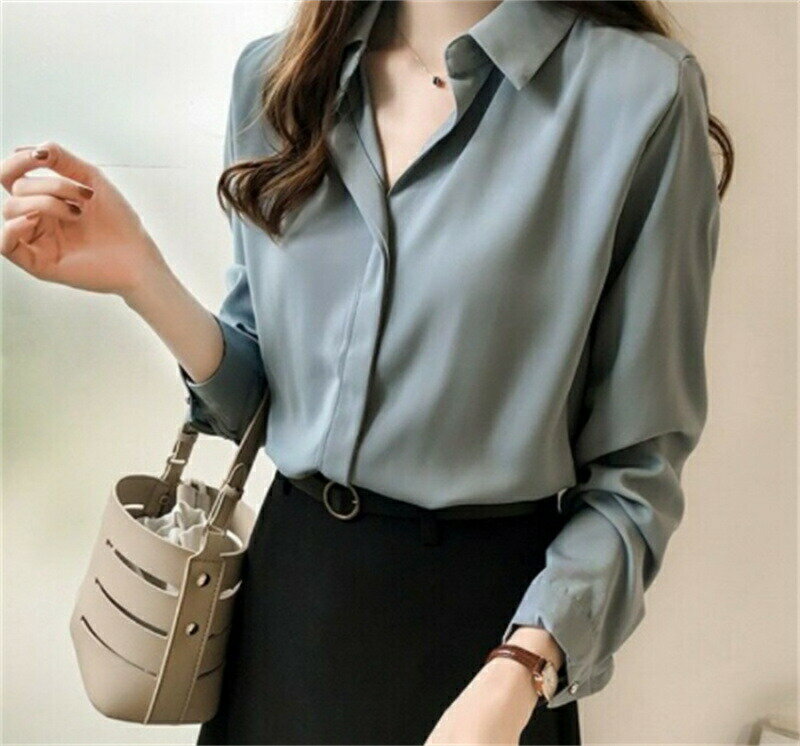 ブラウス 開襟シャツ Vネック シャツ 長袖 送料無料 レディース 上品 無地 トップス おしゃれ オープンカラー ブラウス 夏 きれいめ シンプル フォーマル 大人 通勤 事務服 面接 春
