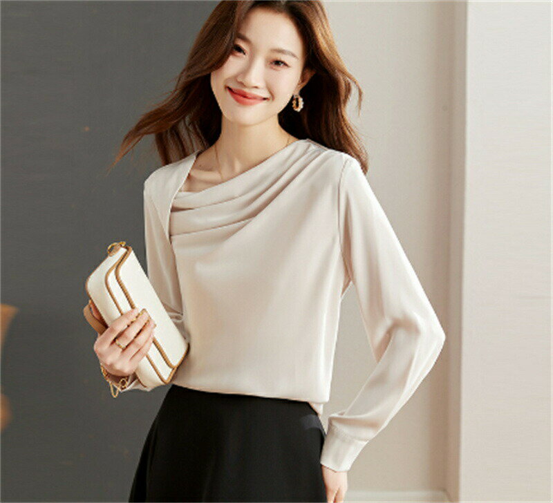 ブラウス レディース 長袖ブラウス オシャレ 春夏 韓国風 不規則ネック ブラウス オフィス 40代 30代 50代 20代 ブラウス 大人 通勤 OL シフォンブラウス シャツ 着痩せ ブラウス 大人 カジュアル ウエア トップス