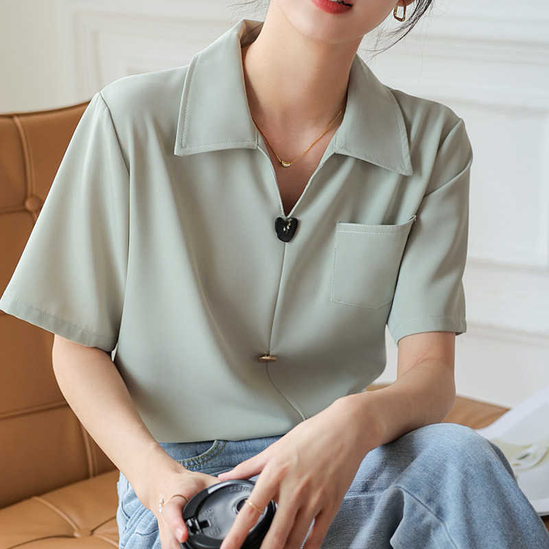 レディース シフォン 開襟シャツ シャツブラウス きれいめ ポロネック 送料無料 半袖トップス Vネック 無地 ワントーン 大人 シンプル カジュアル 上品 おしゃれ 大人可愛い 女子 こなれ感 ゆったり 女子 ブラウス