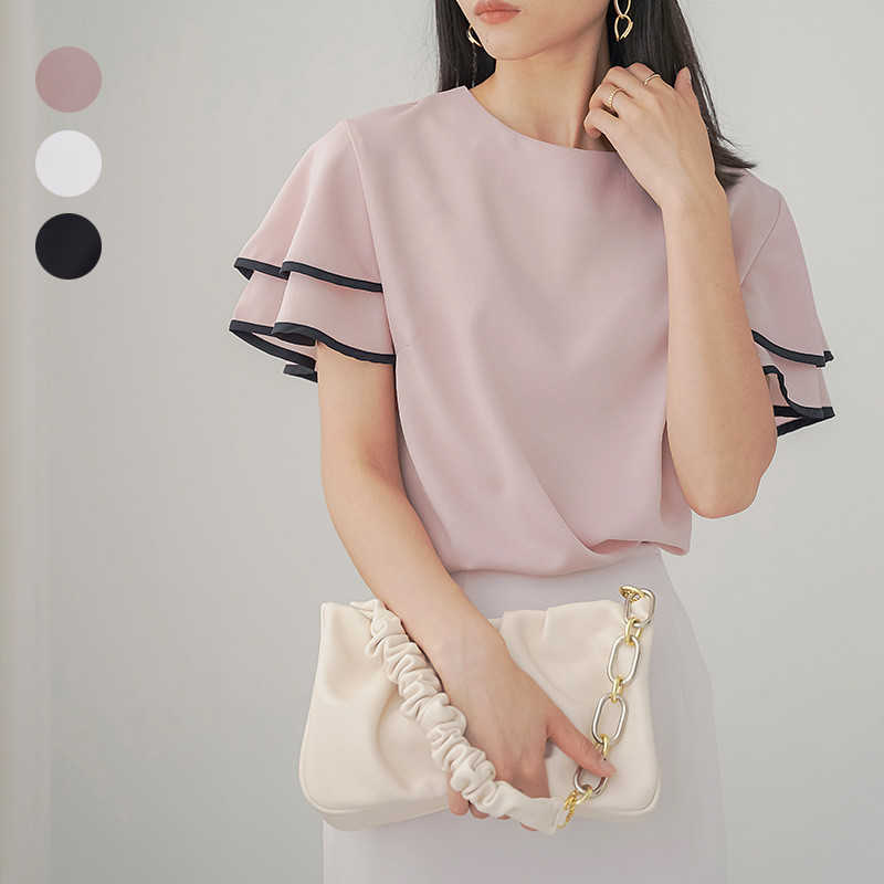 レディース シンプル 半袖 フリルスリーブ 薄手 送料無料 大人 涼し気 ブラウス 半袖シャツ ふんわり袖 シフォンブラウス オフィス 無地 清楚 シフォンブラウス 夏 トップス 大きいサイズ 涼やか 20代 シフォン