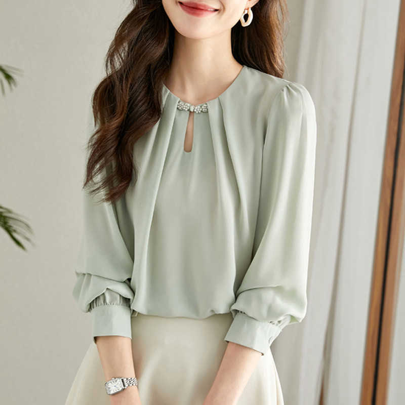 ブラウス レディース 春夏 オシャレ 高品質 長袖ブラウス シフォンブラウス オフィス 40代 30代 50代 エレガント 韓国風 釘玉 ブラウス 大人 通勤 OL ブラウス シャツ 着痩せ ブラウス ゆったり カジュアル ウエア トップス 2色