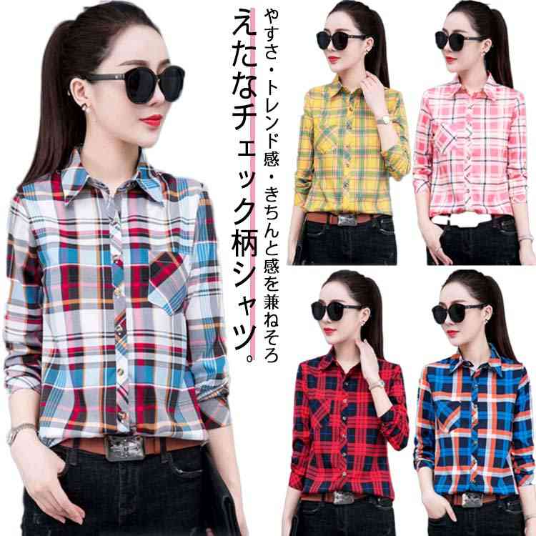 チェック シャツ レディース 大きいサイズ ネルシャツ 長袖 羽織り 着まわし ロングシャツ トップス 体型カバー 大人 キレイめ カジュアル 30代 40代 50代 韓 春夏秋冬 冬物 オフィス シンプル