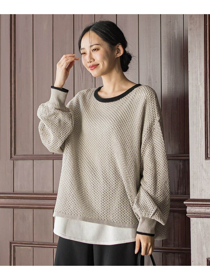【SALE/50%OFF】メッシュ柄レイヤードニット≪手洗い可能≫ Droite lautreamont ドロワット・ロートレアモン トップス ニット ホワイト グリーン【RBA_E】【送料無料】[Rakuten Fashion]