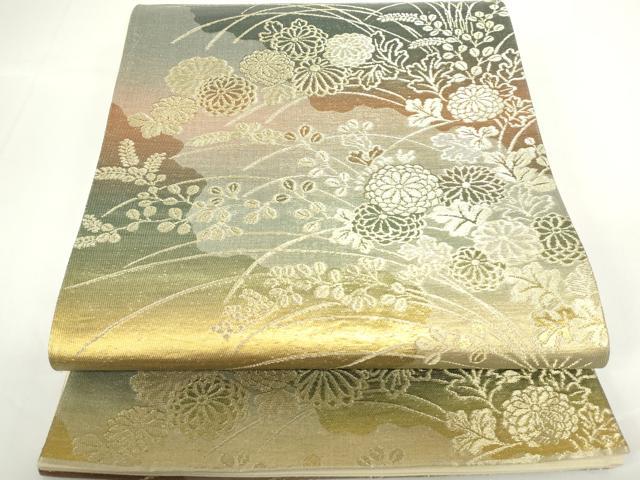 鳳凰に椿模様織出し袋帯【中古】【着】 宗sou