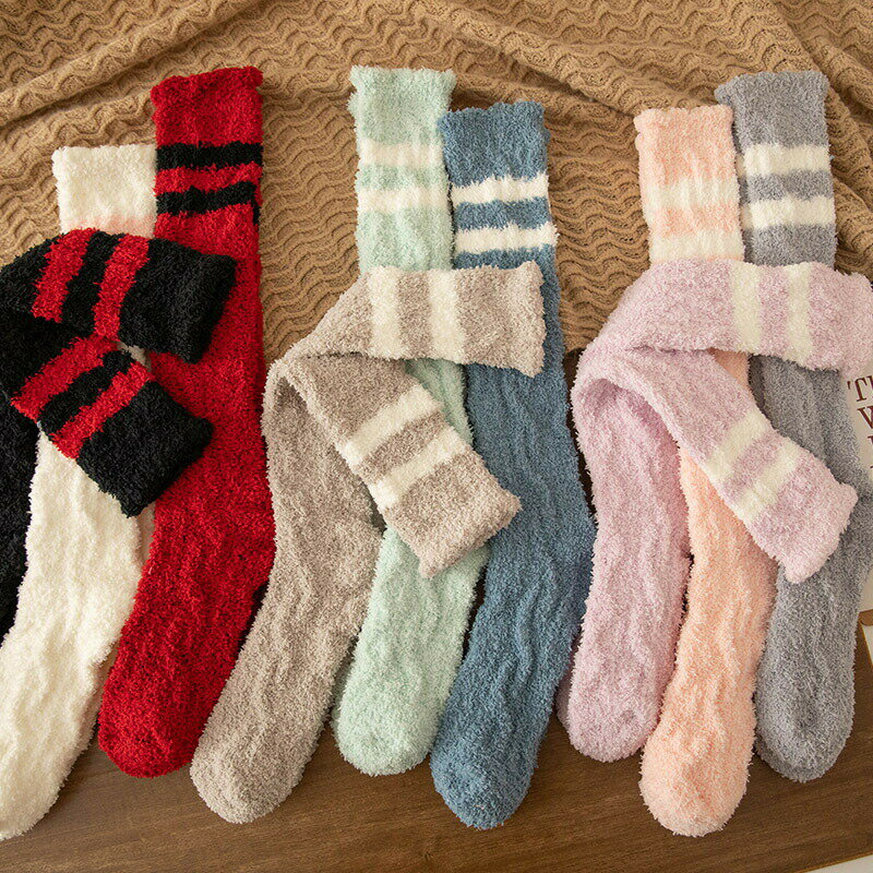 【送料無料】2足セット レディース 靴下 サンゴネル ストッキング ハイソックス ソックス 可愛い おしゃれ 裏起毛 厚手 防寒 ソックス あったか もこもこ ふわふわ 部屋着 ルームウェア 秋冬 ストレッチ あたたまる 9色