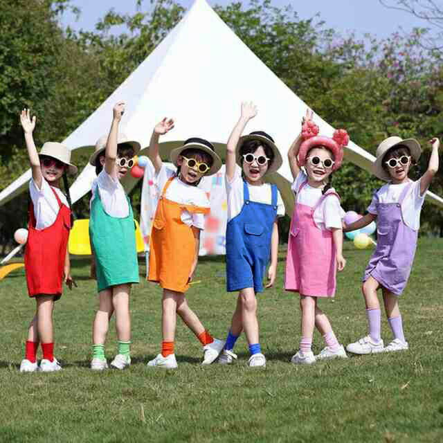 キッズ服 子供用 ダンス衣装 おしゃれ サロペット オーバーオール カラフル カラーパンツ 薄手 夏用 ダンス ヒップホップ 男の子 女の子 ジュニア ジャズ 幼稚園 発表会 演出服 入学式 卒業式