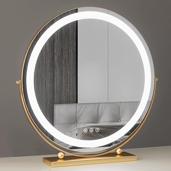 化粧鏡 40 cm 大きい ミラー メイクミラー デスクトップ ミラー 角度360°調整 金属フレーム 卓上鏡 女優ミラー 3色調光 LED 照明付き ハリウッドミラー 丸型