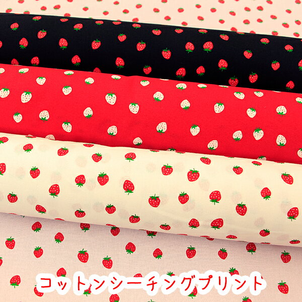 ☆シーチングプリント☆ 『シンプルストロベリー』生地 コットンシーチング生地/イチゴ/ストロベリー/シーチング/かわいい/韓国/タケヒロヤ/布