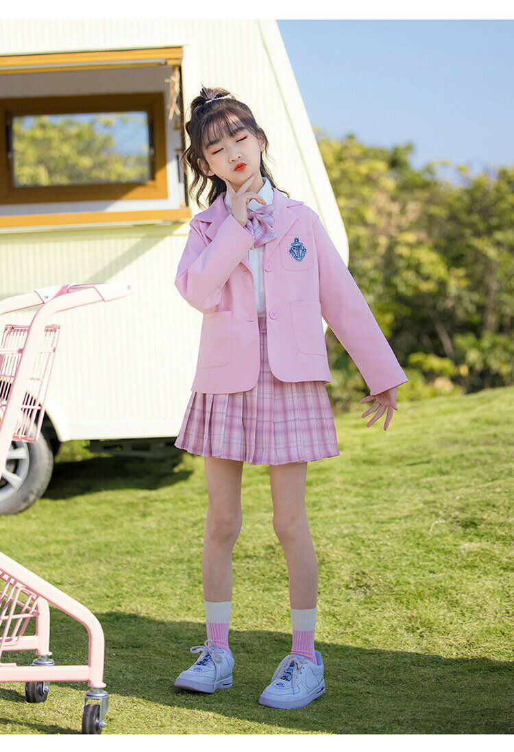 入学式 スーツ 女の子 スカートスーツ 4点セット(ジャケット+シャツ+プリーツスカート+ネクタイ) 女の子 上下セット セットアップ 入学式 卒業式 スーツ 女の子 韓国子供服 ガールズ セットアップ キッズ 発表会