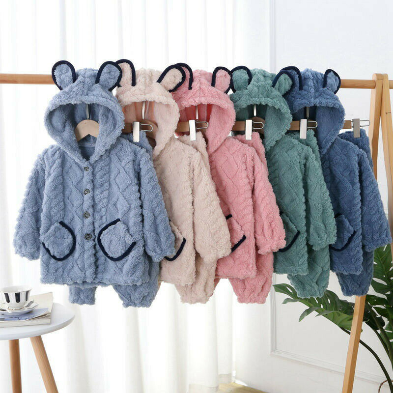 キッズ パジャマ 女の子 男の子 冬用 赤ちゃん ベビー フランネルパジャマ 子供パジャマ セットアップ フード付き 裏起毛 厚手 暖かい 長袖 モコモコパジャマ ルームウェア 部屋着 かわいい ユニセックス おしゃれ 寝巻き ナイトウェア 5色 80 90 100 110 120