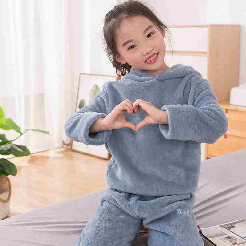 キッズ パジャマ 女の子 男の子 冬用 フランネルパジャマ 子供パジャマ セットアップ フード付き 前ボタン 裏起毛 厚手 暖かい 長袖 モコモコパジャマ ルームウェア 部屋着 かわいい ユニセックス おしゃれ 寝巻き ナイトウェア 6色 80 90 100 110 120 130 140 150 160