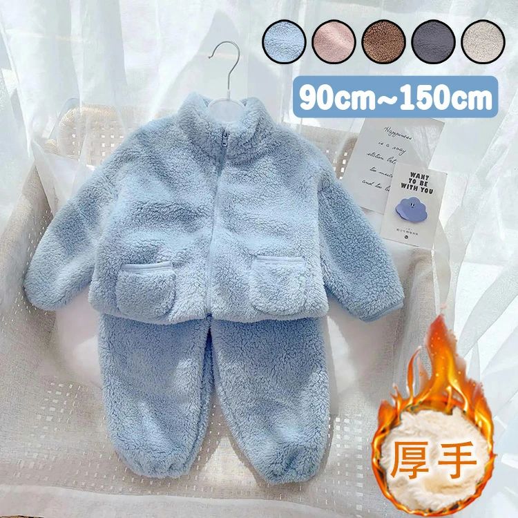 冬 セットアップ 前開き ボア パジャマ 可愛い 部屋着 ルームウエア かわいい 長袖 裏起毛 秋 女の子 上下セット パジャマ 無地 ベビー 赤ちゃん 厚手 セットアップ 110 防寒 モコモコ 送料無料 90 100 長ズボン 120 130 140 キッズ