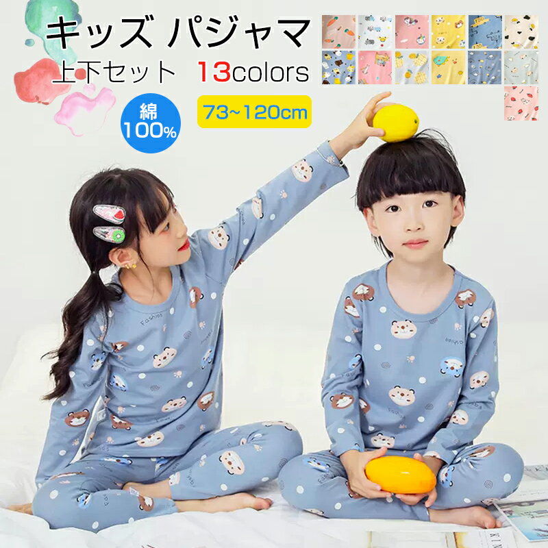 綿100% 季節の変わり目にぴったりの厚み おしゃれな細身タイプ パジャマ キッズ 長袖 【送料無料】 子供 女の子 男の子 ベビー ルームウェア 上下セット 韓国 風 子供服 かわいい 綿 コットン 上下 おしゃれ 春 秋 冬 73 80 90 100 110 120