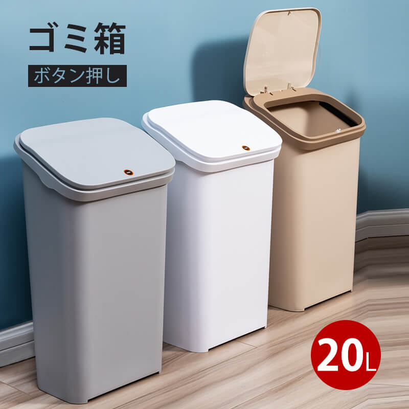 お買い物マラソン【P5倍】20L ボタン押し ごみ箱 ゴミ箱 くず箱 ごみばこトラッシュカン おしゃれ 20リットル 清潔感 キッチン シンプル 生ゴミ 大容量 袋 見えない 隠す 臭わない オフィス 蓋つき