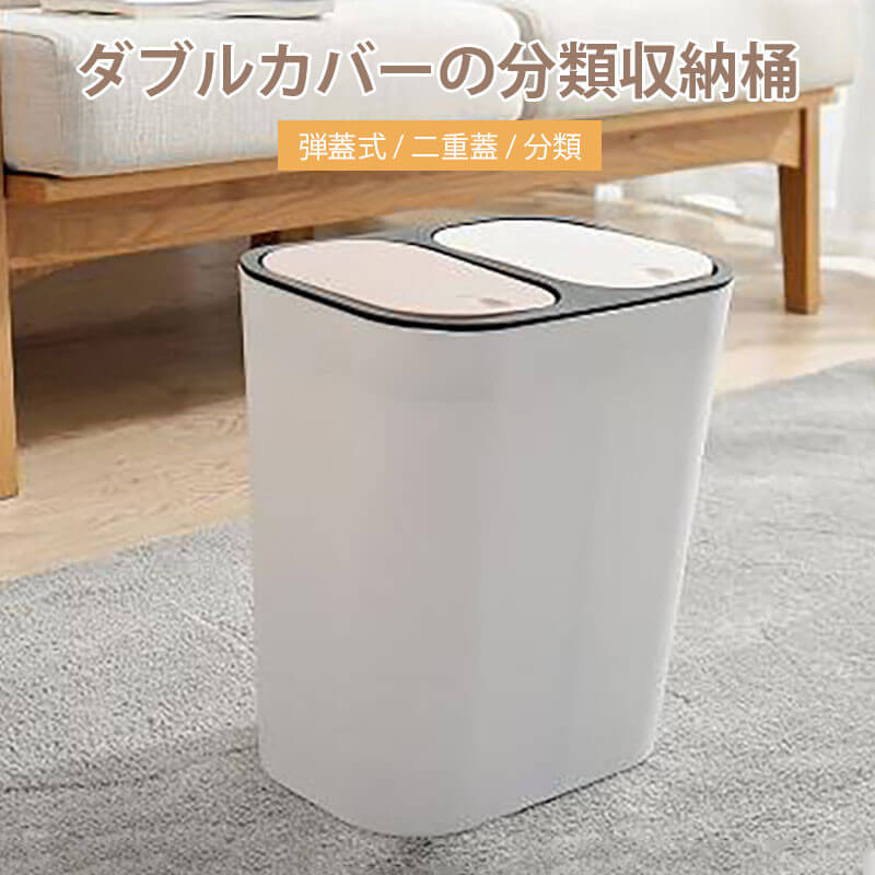 お買い物マラソン【P5倍】弾蓋式/二重蓋/分類 ダブルカバーの分類収納桶 家庭用/トイレ/オフィス用 15L分別ゴミ箱 分類されたストレージ 手で押すと開ける ニッチデザイン ゴミ箱 クローズド