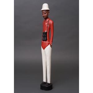 アフリカ コートジボワール コロン人形 XLサイズ NO.14 レッドジャケットの紳士 木彫り 立像 アフリカ雑貨 彫刻