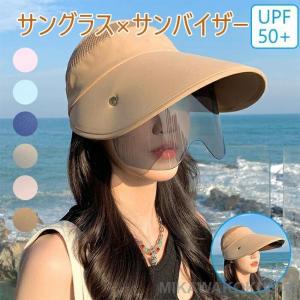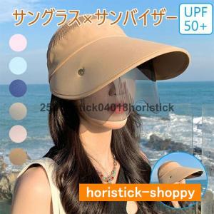 サングラスとサンバイザーの一体型 偏光フェイスカバー 日よけ帽子 自転車で飛ばないキャップ あごひも付きuvカット帽子 アウトドア活動に最適 遮光日焼け止め