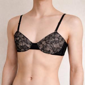 メンズブラ 男性用ブラジャー こんな気持ちブラ レース仕様 フラット mbr-540 ブラック
