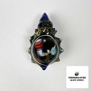 TOMOMATSU GLASS WORKS/ガラスペンダントトップ/巻貝 宇宙タイプ/ブルー/ゴールド/流れ星/コスモ/個性的/ハンドメイド/日本製
