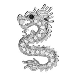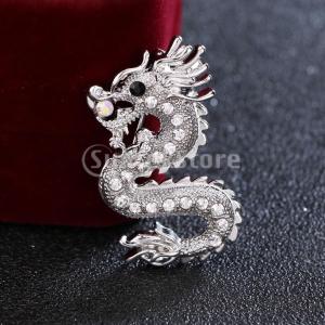 ヴィンテージ フライングドラゴンデザイン ブローチピン クリスタル メンズ スーツ アクセサリー 全2色 - シルバー