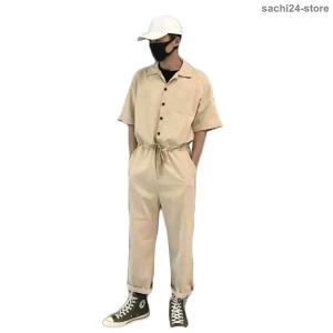 【値下げ】オールインワン メンズ つなぎ 作業着 ジャンプスーツ オーバーオール つなぎ服 半袖 ストレッチ Gパン 作業服 ワークパンツ ミリタリー パンツ