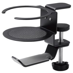 エレコム ヘッドホンスタンド ホルダー クランプ式 ドリンクホルダー付 デスク下 収納 ブラック HP-DSDSKDBK