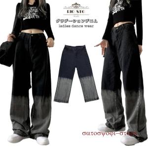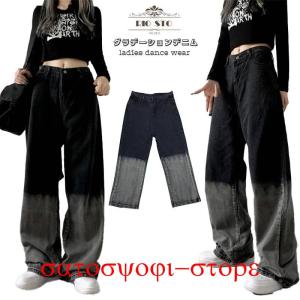 デニム パンツ レディース ダンスパンツ 長ズボン グラデーション デニム メンズ ゆったり ハイウェスト原宿系 韓国ファッション