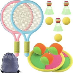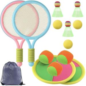 Sweet Plus テニス バドミントン ミニラケット おもちゃ 子供 羽付き 外遊び アウトドア 室内 スポーツ 運動 (ピンクxブルー)