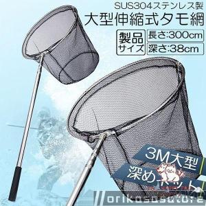 タモ網 玉網 タモ網 ランディングネット伸縮式 すくい網 丸形網 折りたたみ式 調節可能 軽量 釣り用品 漁具 淡水 海水適用 全魚種対応 シルバー 長さ3M