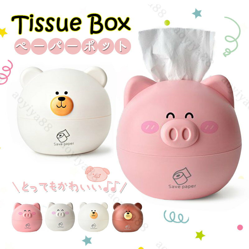 ペーパーポット ティッシュケース ティッシュボックス かわいい トイレットペーパー 熊と豚 インテリア 卓上収納 ケース ティッシュカバー