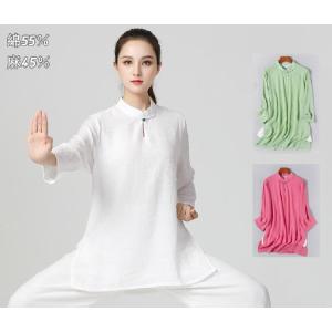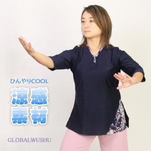 太極拳 Tシャツ【刺繍Tシャツ リーフ】太極拳ウェア レディース カンフー 服 半袖 スリット入り 練習着 吸湿速乾 メッシュ生地 刺繍 ワッペン